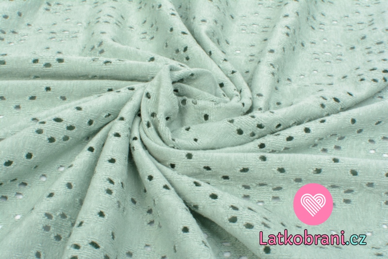 Úplet s dírkovanou výšivkou (madeira) jednobarevný starozelený