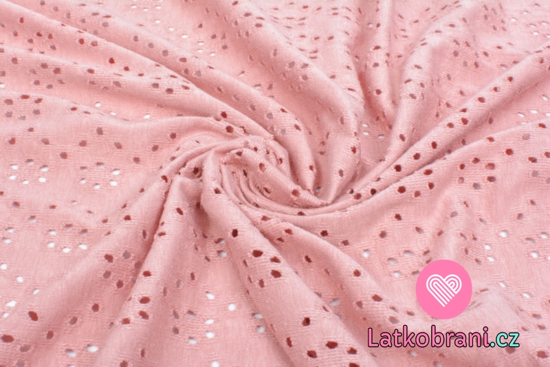 Úplet s dírkovanou výšivkou (madeira) jednobarevný lososově růžový