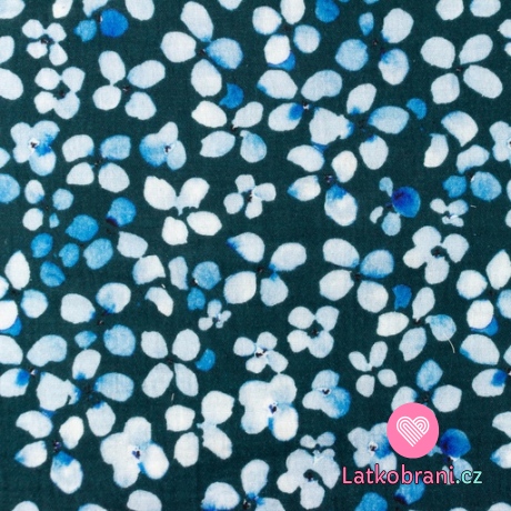 Dvojitá gázovina / mušelín modrobílá kvítka na modré