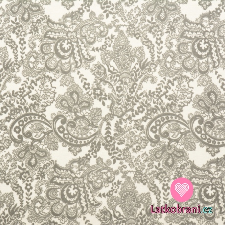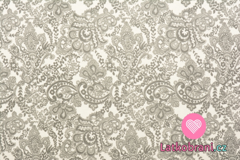 Úplet potisk květinová krajka na světle šedé