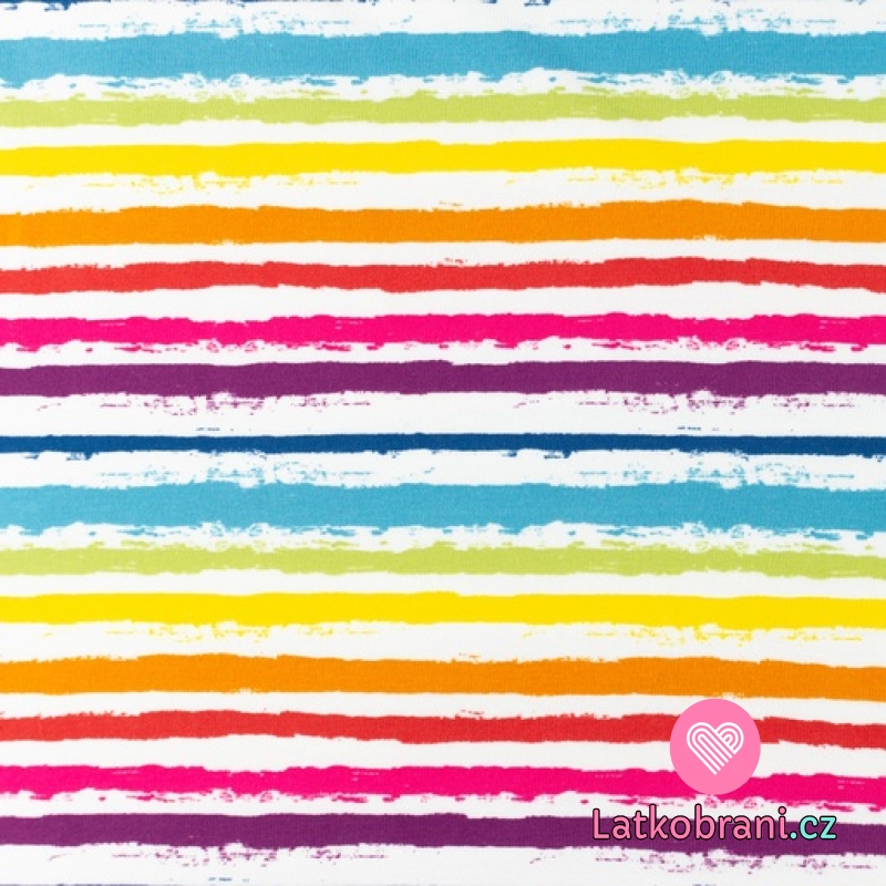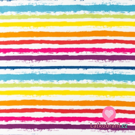 Úplet potisk užší, barevné malované proužky na bílé