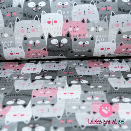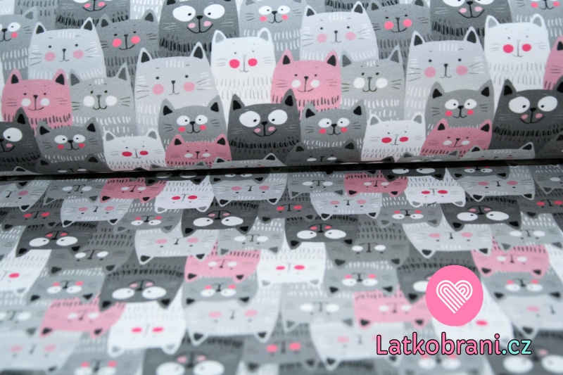 Teplákovina kočky šedé, růžové v řadě