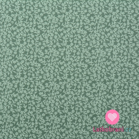 Bavlněný manšestr potisk drobné kytičky na zelené