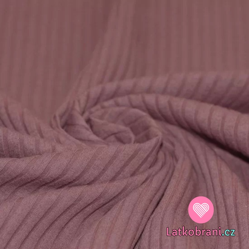 Žebrovaný jednobarevný úplet se širokými pruhy mauve