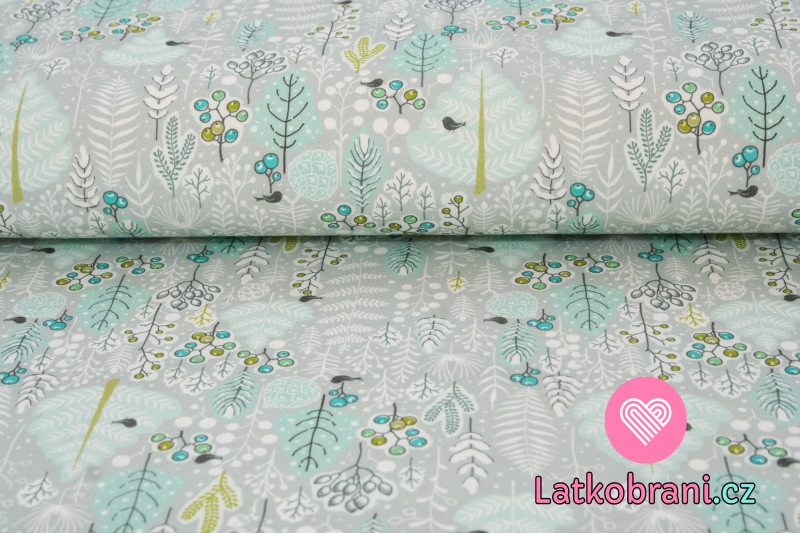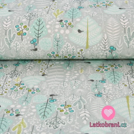 Teplákovina zimní větvičky na jemné šedo-modrém podkladu