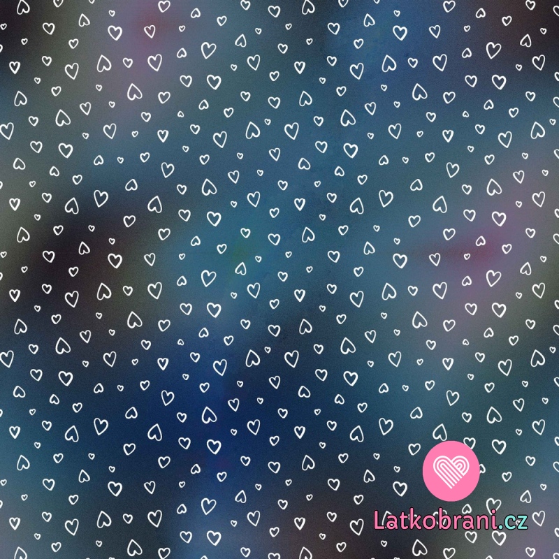 Teplákovina bílá srdíčka na magické modré