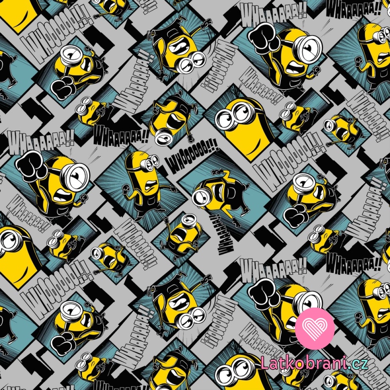 Teplákovina počesaná potisk mimoni na šedé