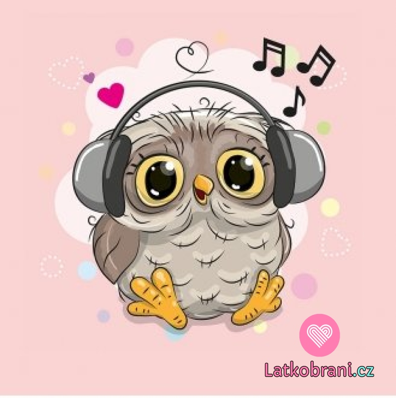 Panel sova se sluchátky na růžové