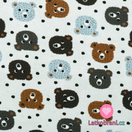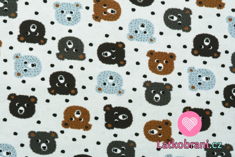 Úplet potisk hlavy medvídků s puntíky na krémové