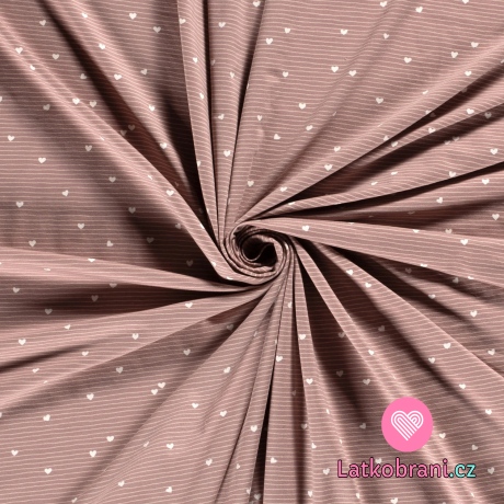 Úplet potisk srdíčka s proužky na levandulové