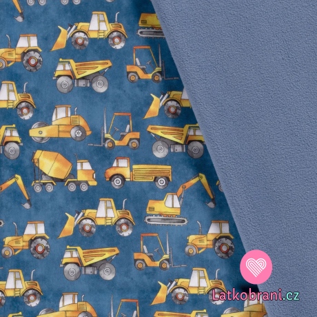 Softshell stavební vozidla na modré indigo