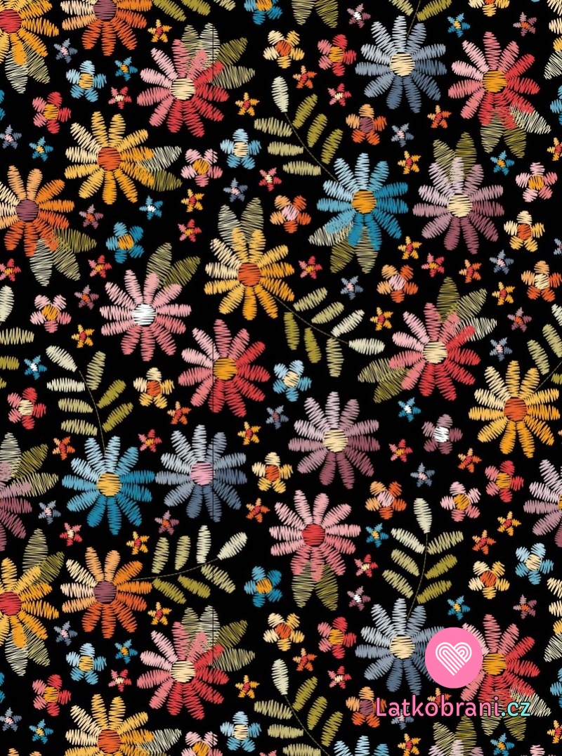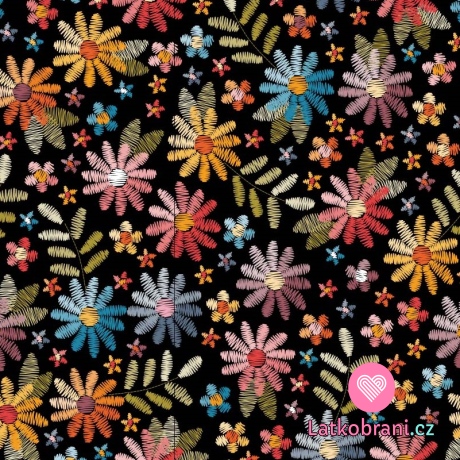 Úplet potisk "vyšívané" květiny na černé