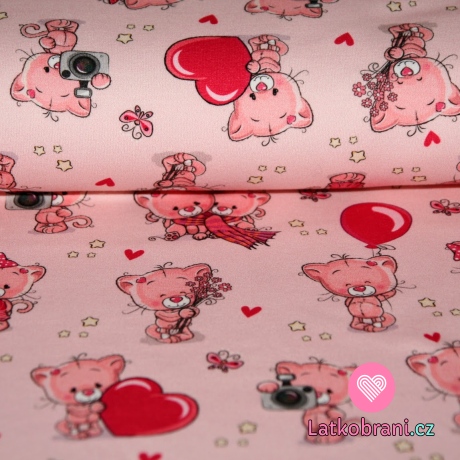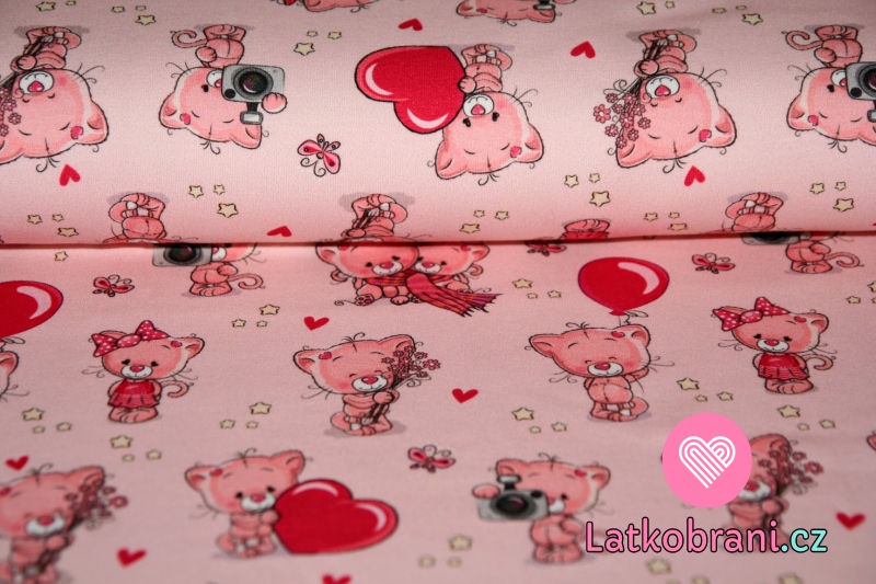 Teplákovina kočička se srdíčky a fotoaparátem na růžové