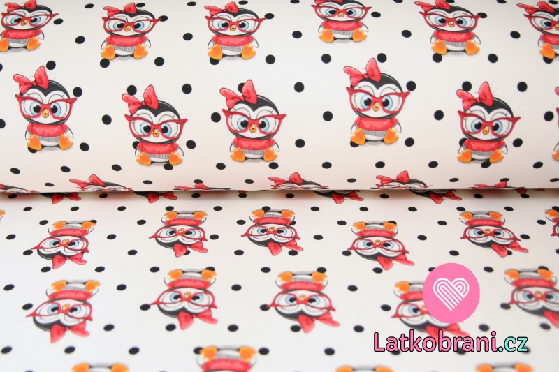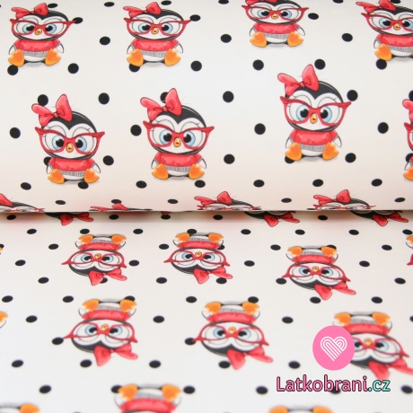 Teplákovina tučňák v brýlích s puntíky
