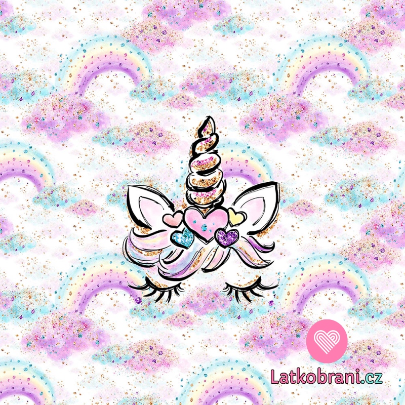 Panel jednorožec s dlouhými řasami a duhou