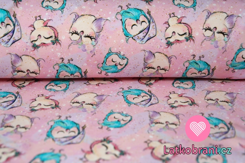 Teplákovina spící sovičky v čepici na růžové
