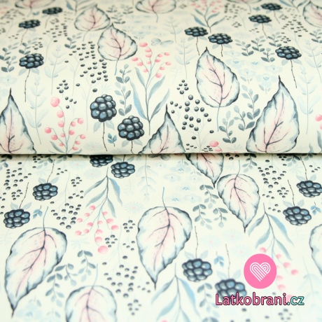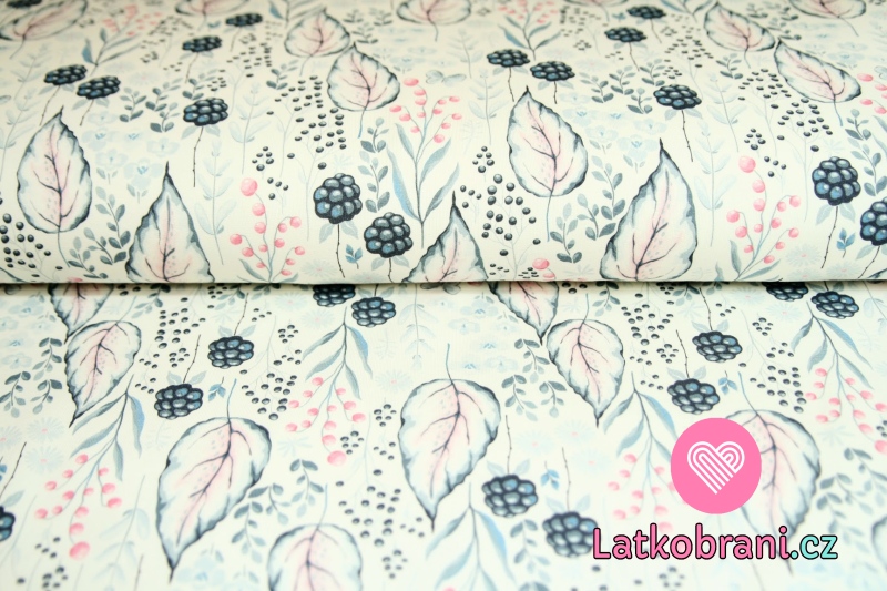 Teplákovina ostružiny s listy na smetanové