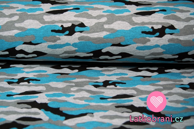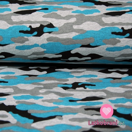 Teplákovina maskáč tyrkys s šedou melé