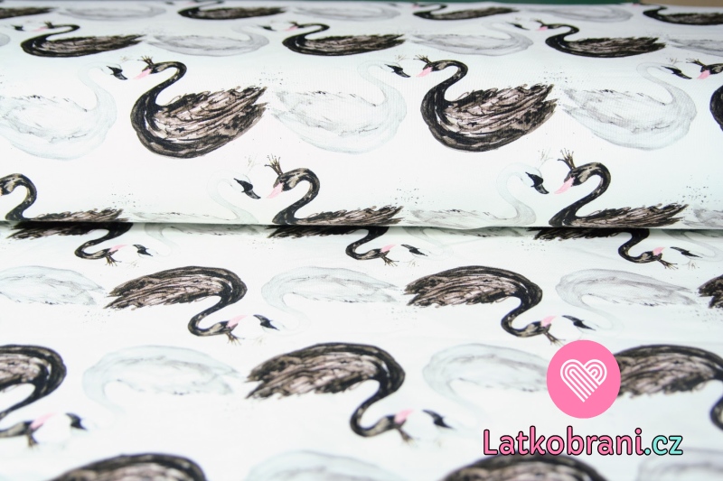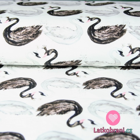 Teplákovina labutě černá a bílá na krémové do bíla