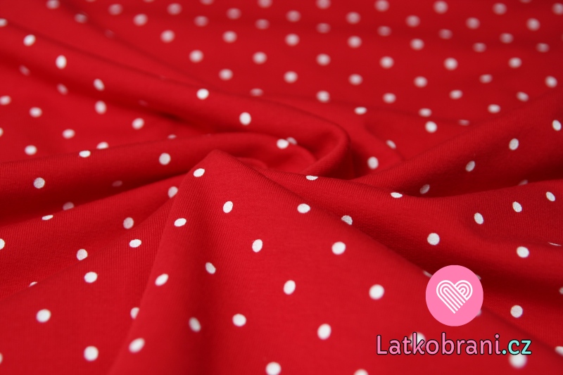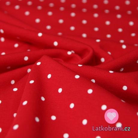 Teplákovina bílé puntíky na červené