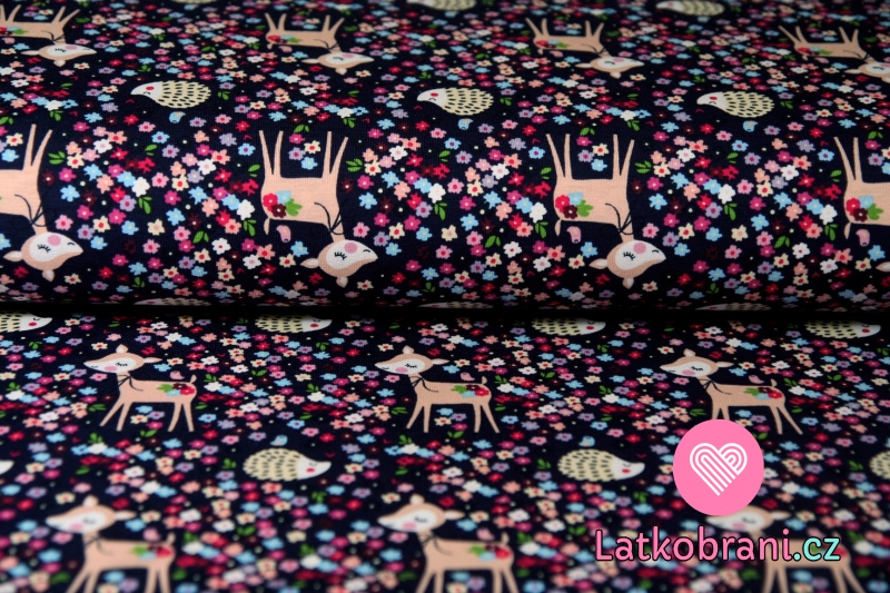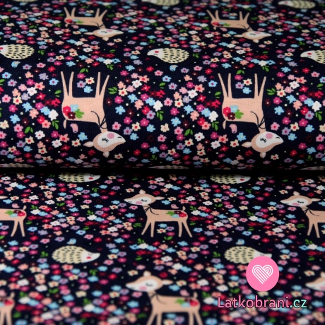 Úplet koloušek s ježkem v květinách na tmavě fialové