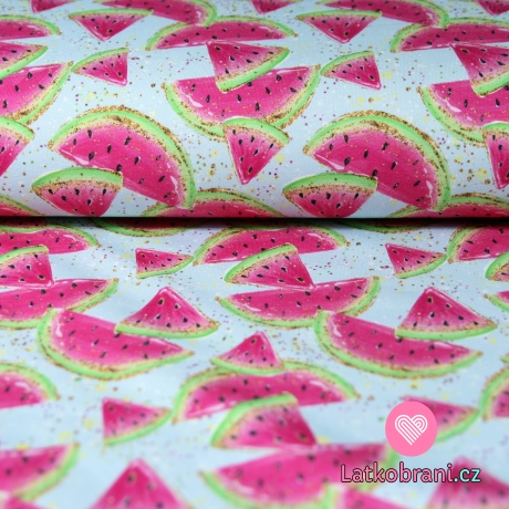 Teplákovina melounové čtvrtky na modré