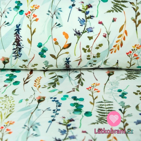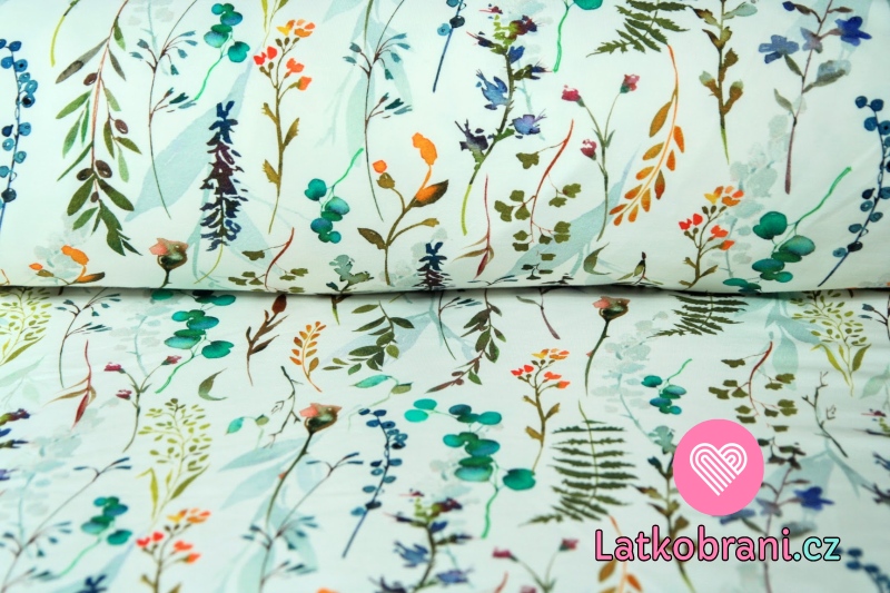 Teplákovina kvítí s makovicemi na bílé