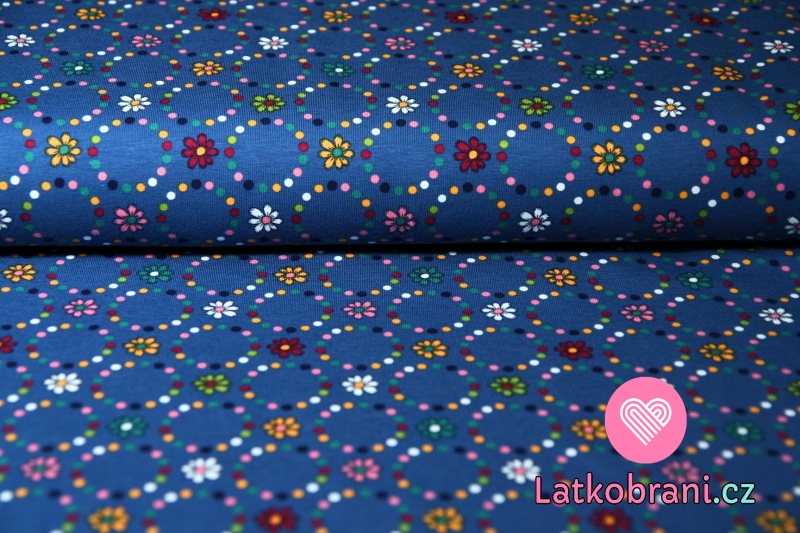 Úplet drobné kytičky s korálky na modré