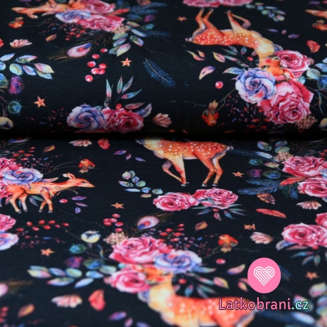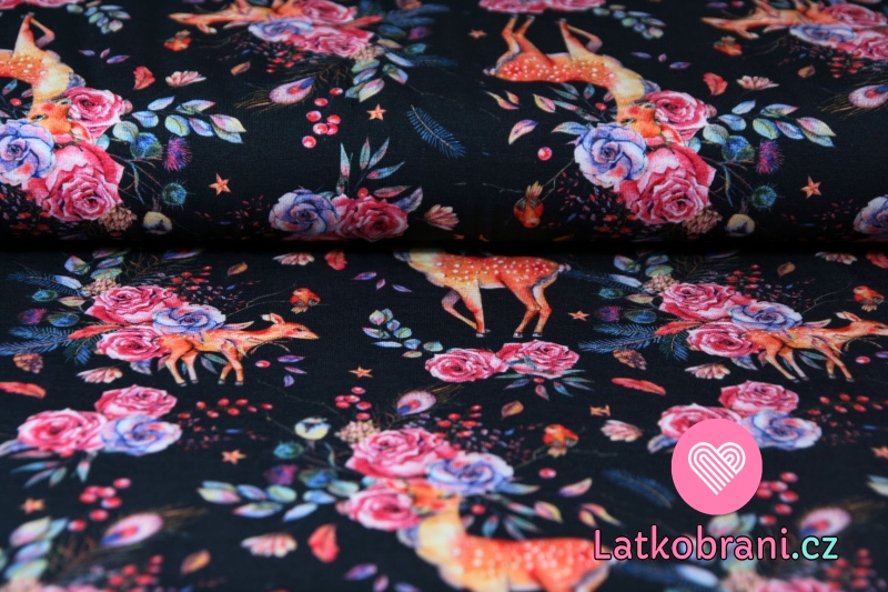 Úplet laň v květinách na tmavě modré