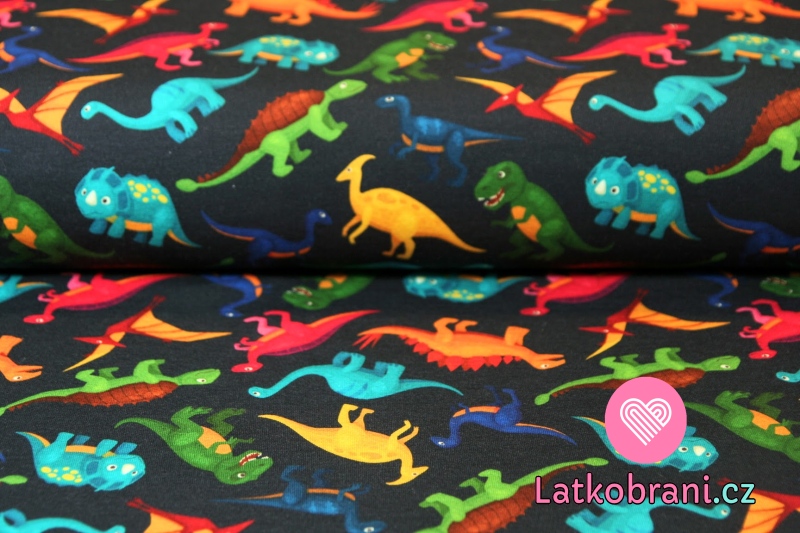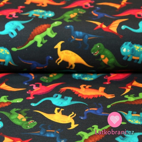 Teplákovina dinosauři barevní na tmavě modré