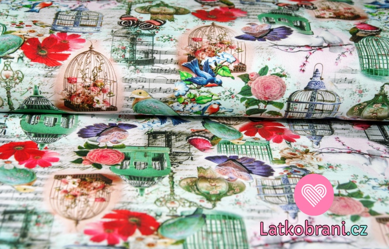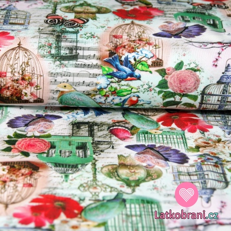 Úplet retro ptáčci s klecí