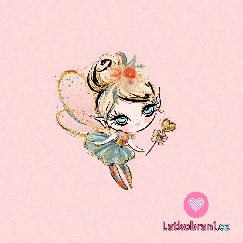 Panel lesní víla blondýnka s hůlkou na starorůžové