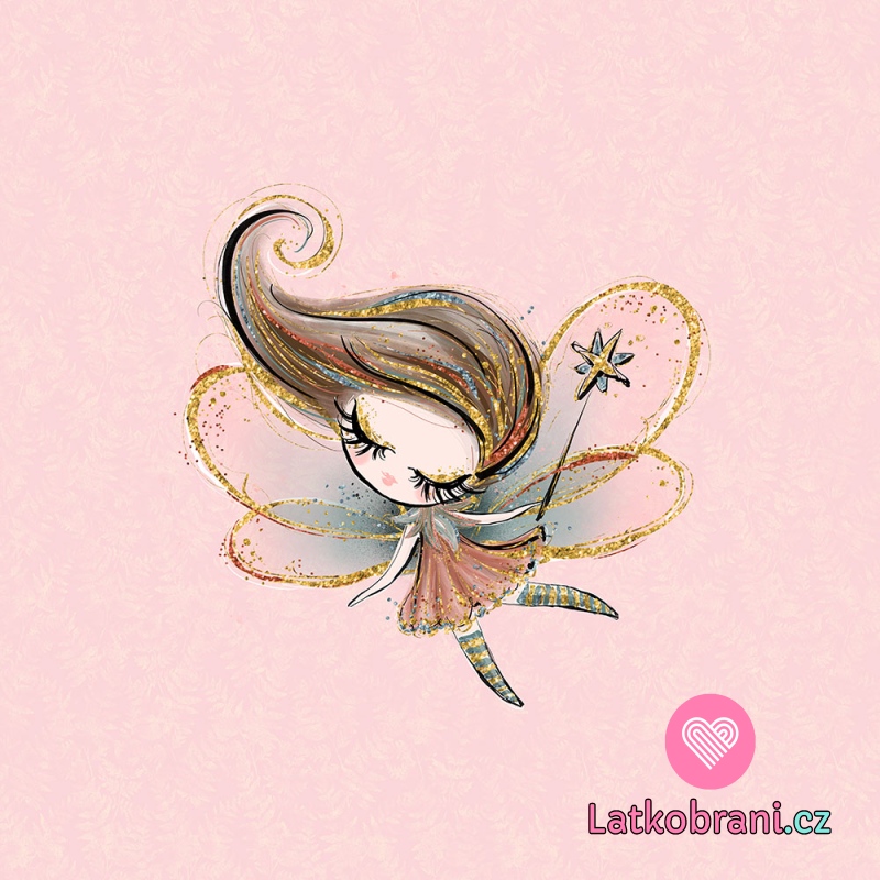Panel lesní víla hnědovláska s hůlkou na starorůžové