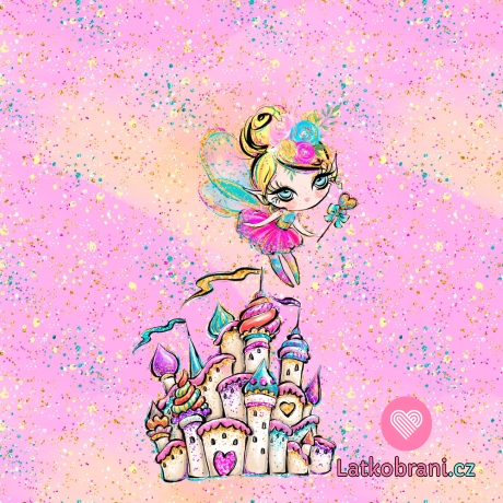Panel lesní víla na duhovém zámku na růžové