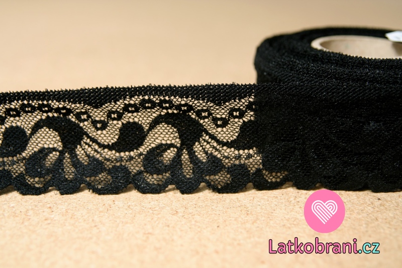 Krajka elastická černá 50 mm