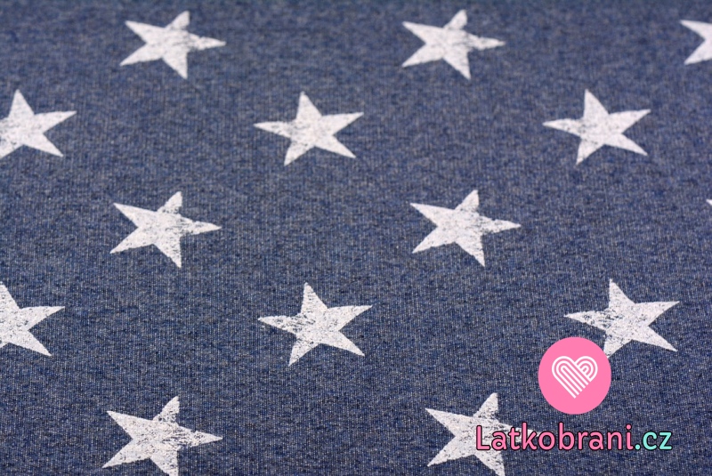 Teplákovina potisk oprané bílé hvězdy na džínsově modré