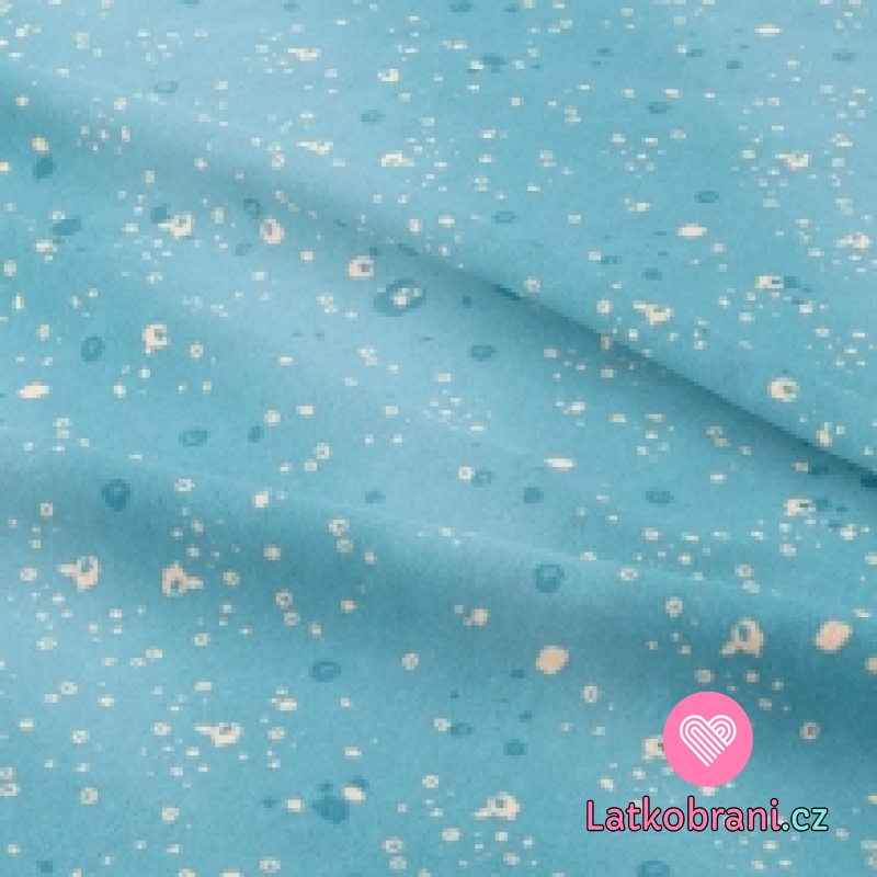 Teplákovina potisk kaňky modré a bílé na baby modré