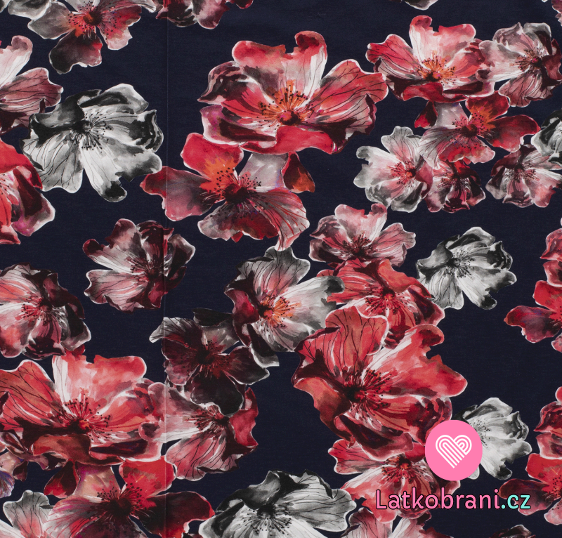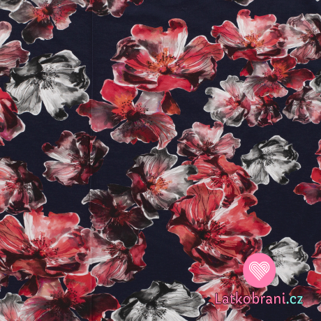 Úplet potisk velké květy na tmavě modré