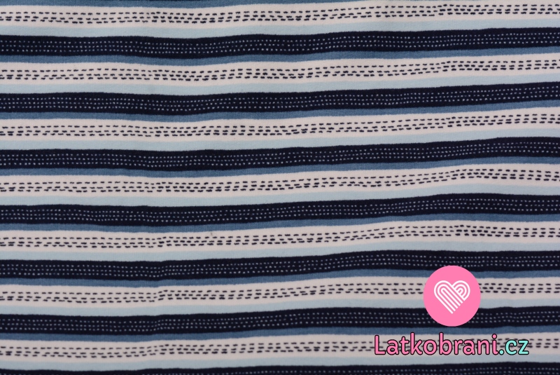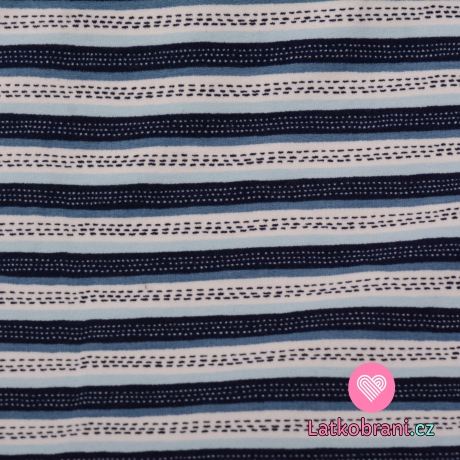 Teplákovina počesaná proužky tmavě a světle modré, bílé