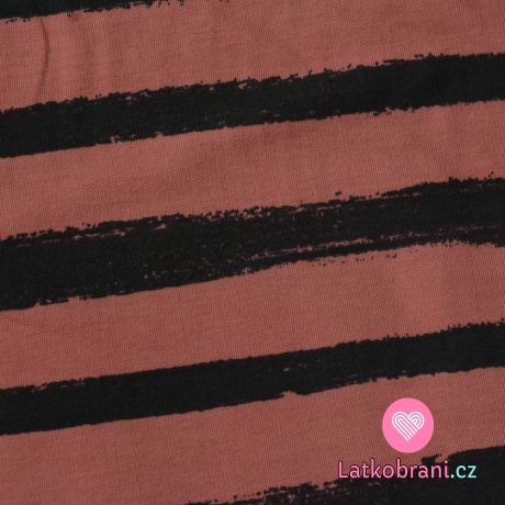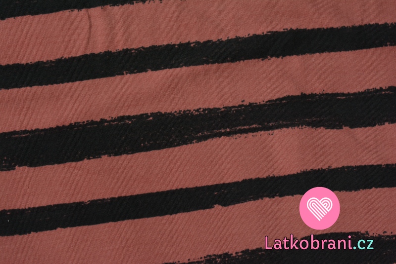Teplákovina potisk čáry štětcem do pruhu tmavě šedé na zaprášené syté starorůžové