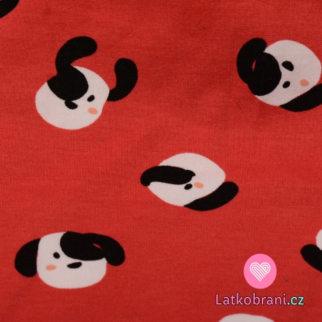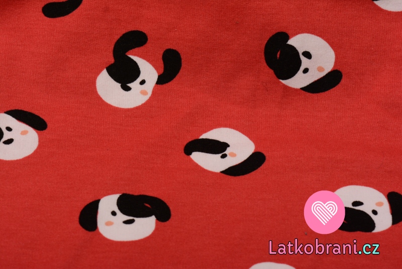 Teplákovina počesaná hlavy pejsků na korálově červená