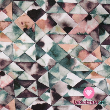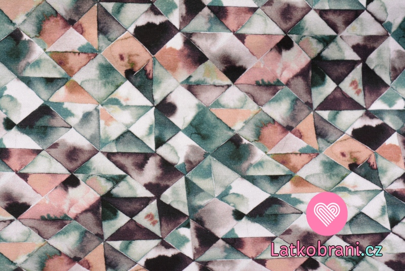 Teplákovina potisk trojůhelníky zeleno-petrolejo-starorůžové