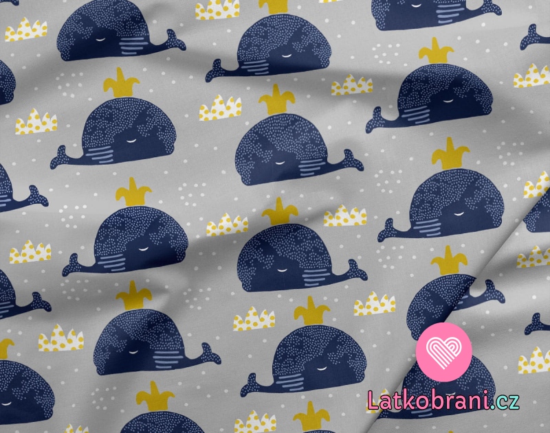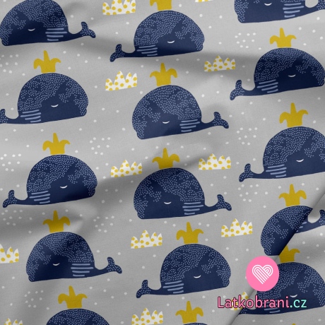 Teplákovina potisk velryby s vodotryskem na světle šedé
