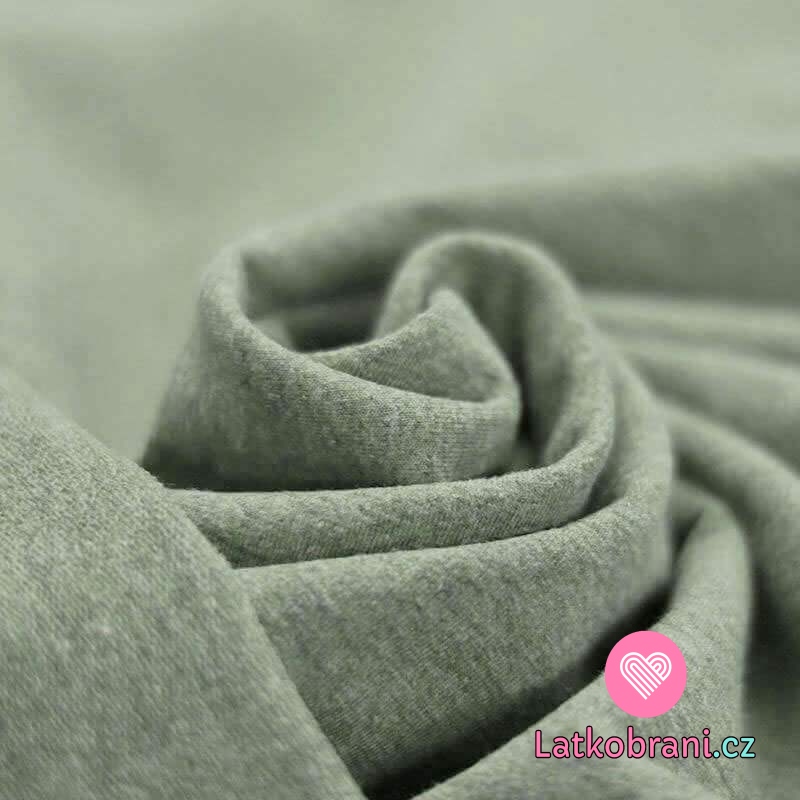 Jednobarevná teplákovina melange olivově zelená 290g