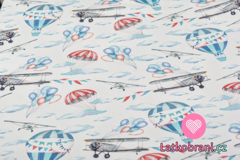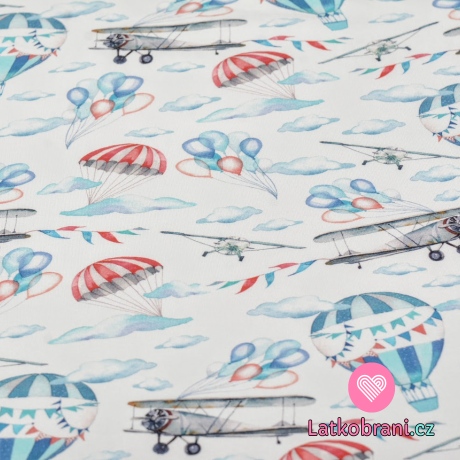 Teplákovina potisk letadla a létací balóny mezi mraky