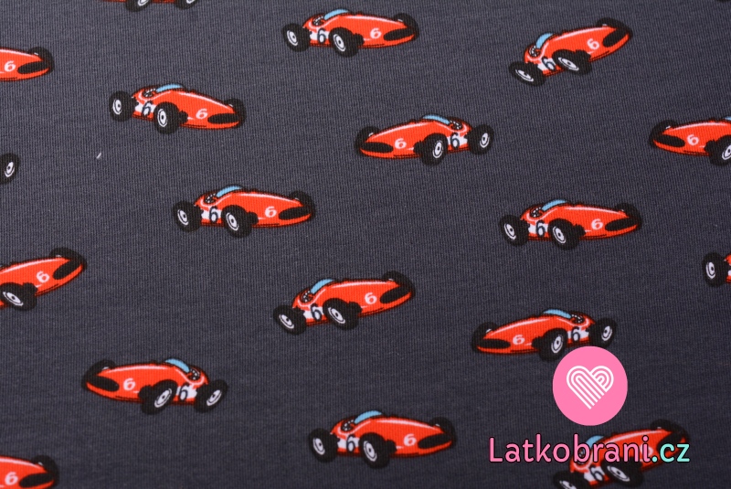 Teplákovina potisk červená formule na tmavě šedé