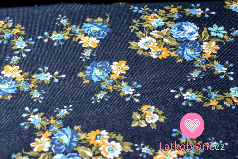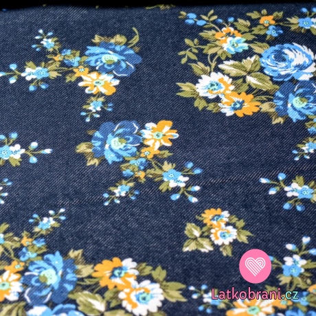 Teplákovina počesaná potisk květinový vzor na džínové