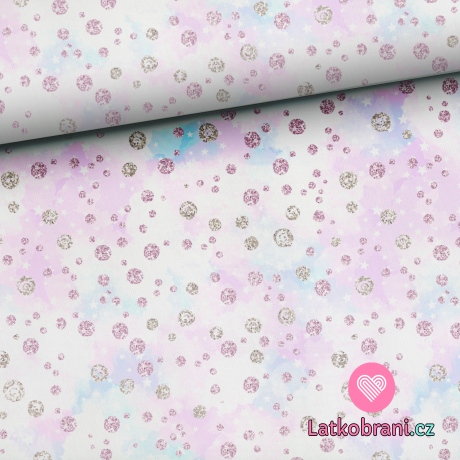 Teplákovina potisk diamanty na růžovo - fialové noční obloze