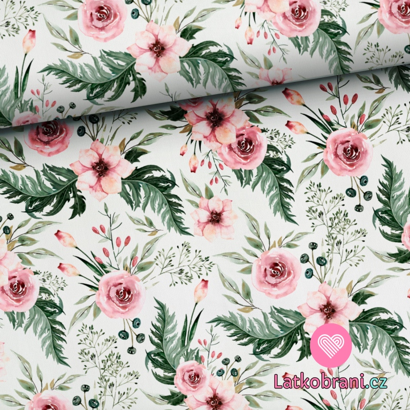 Teplákovina šípkové růže s listy na zaprášené bílé