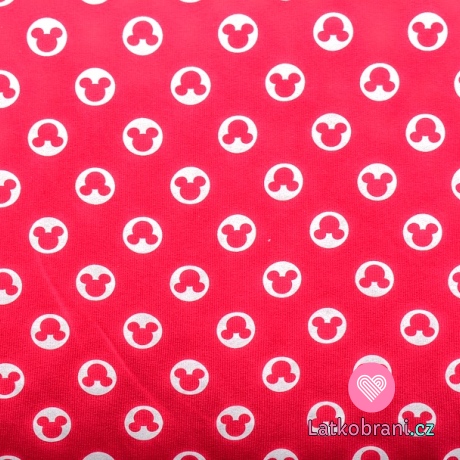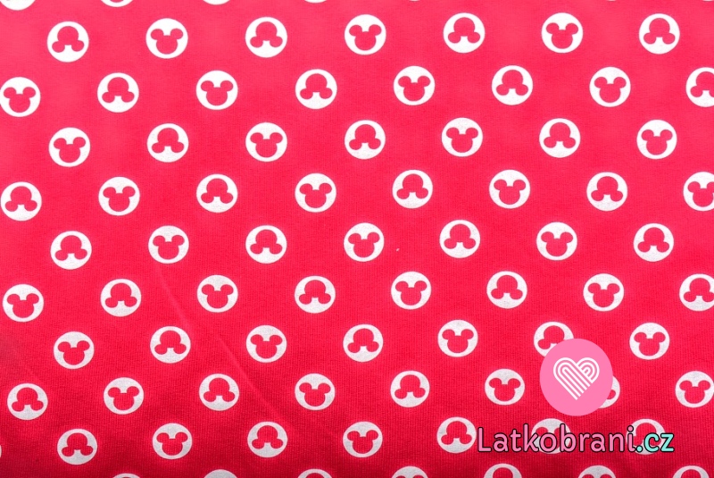 Teplákovina potisk hlavička myšky v bílém kroužku na malinově růžové
